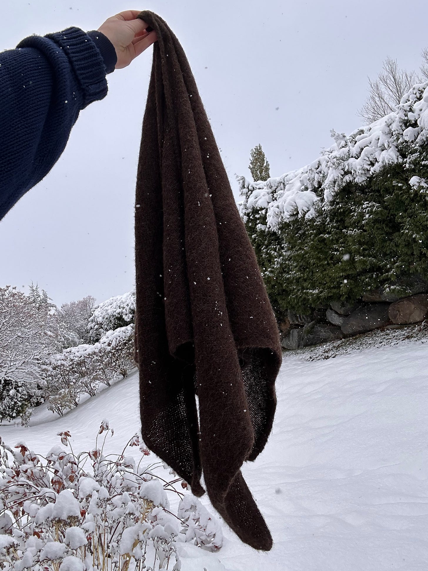 I’m in Vermont this week. I wasn’t expecting snow, but I’m grateful I have my First Rite scarf. It goes everywhere with me. The size, shape, and thickness are perfect. Easy to toss in a bag, warm like a big scarf without the bulk.